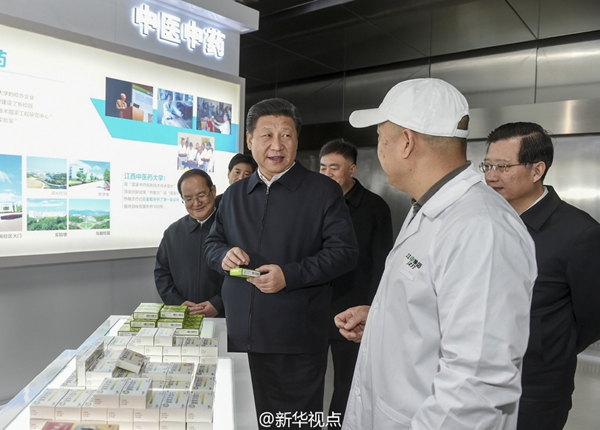 琳瑯滿目的中醫(yī)藥產(chǎn)品、生物醫(yī)藥產(chǎn)業(yè)的蓬勃發(fā)展,給總書記留下深刻印象。他說,醫(yī)療保健是全面建成小康社會(huì)的重要方面,要下大氣力抓好,生產(chǎn)廉價(jià)、高效、優(yōu)質(zhì)、群眾需要的藥品,杜絕假冒偽劣,切實(shí)保障老百姓的生命健康權(quán)益。中醫(yī)藥是中華文明瑰寶,是5000多年文明的結(jié)晶,在全民健康中應(yīng)該更好發(fā)揮作用。