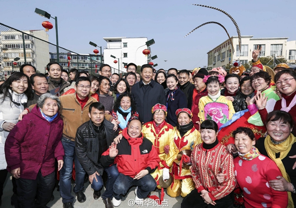 在南昌市東湖區(qū)彭家橋街道光明社區(qū),居民們組成的舞獅隊(duì)、燈彩隊(duì)正在排練,一派節(jié)日景象。看到群眾其樂融融,習(xí)近平對(duì)大家說,人民幸福就是我們工作的目標(biāo)。春節(jié)即將到來,希望咱們老百姓們過一個(gè)幸福、祥和、美好的春節(jié)。