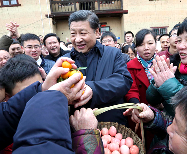 2月2日,習(xí)近平到井岡山看望老區(qū)鄉(xiāng)親,向大家拜年,一一熱情握手。新華社記者 蘭紅光 攝