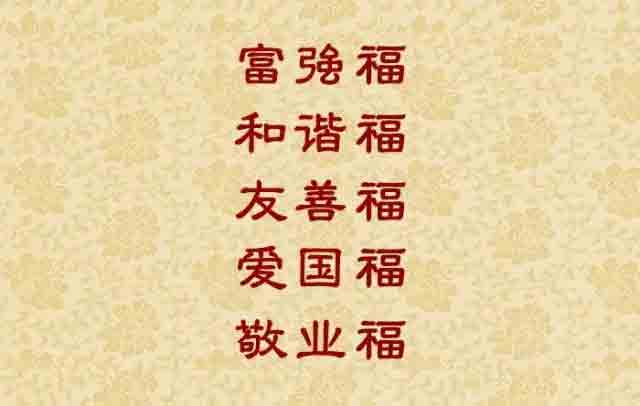 “富強(qiáng)福、和諧福、友善福、愛國福、敬業(yè)福”,這新的“五!,頗耐人尋味。