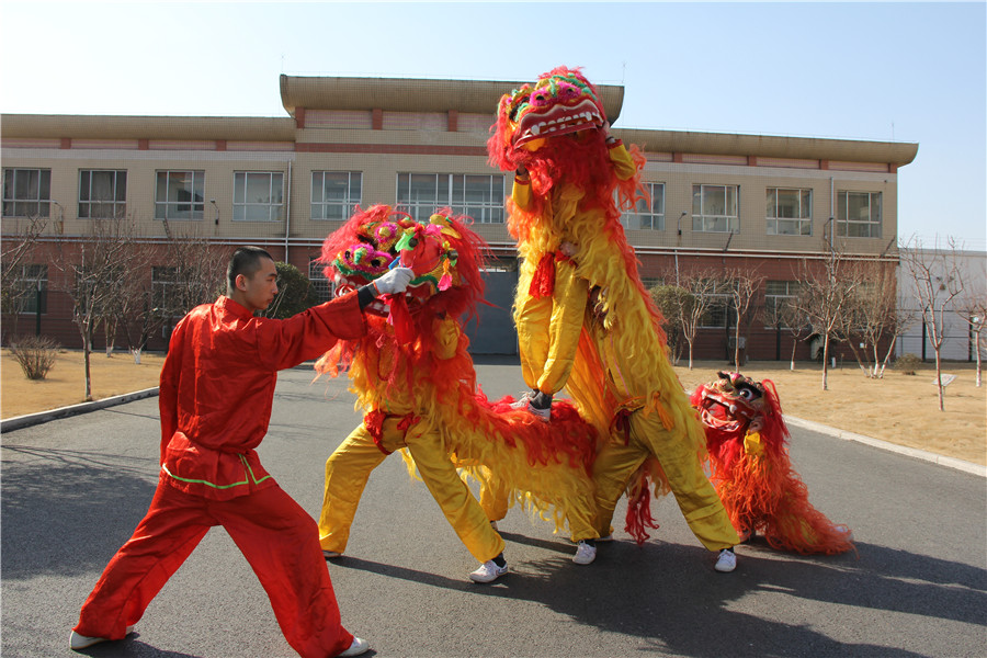 服刑人員通過表演舞獅等民間傳統(tǒng)節(jié)目,迎接2016猴年春節(jié)