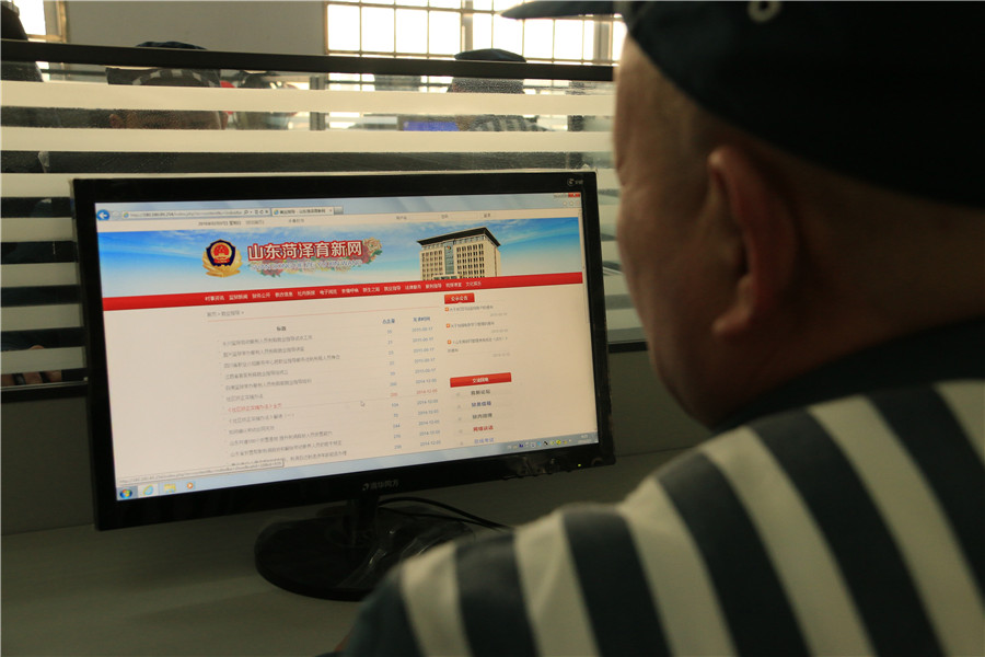 一名服刑人員正在使用監(jiān)獄獄內網“山東菏澤育新網”