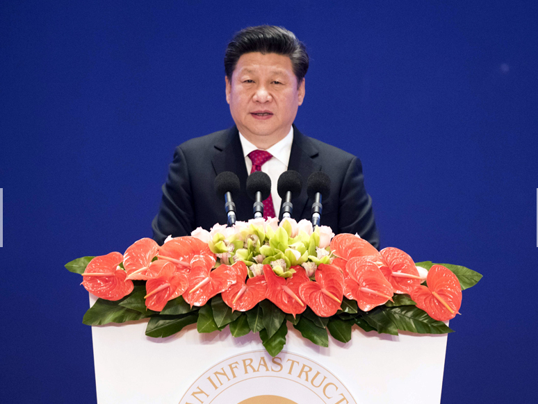 1月16日,亞洲基礎(chǔ)設(shè)施投資銀行開業(yè)儀式在北京舉行。國家主席習近平出席開業(yè)儀式并致辭。圖片來源新華社