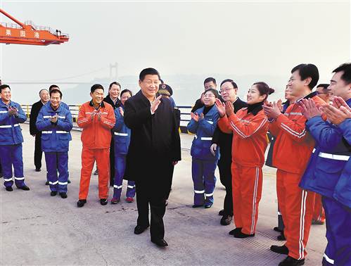 圖為:2016年1月4日下午,習(xí)近平在重慶兩江新區(qū)果園港看望現(xiàn)場作業(yè)人員。