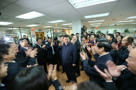 2月19日上午8時40分,中共中央總書記、國家主席、中央軍委主席習(xí)近平來到人民日報社調(diào)研。