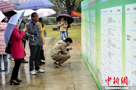 應(yīng)聘者冒雨求職!£愺K旻 攝