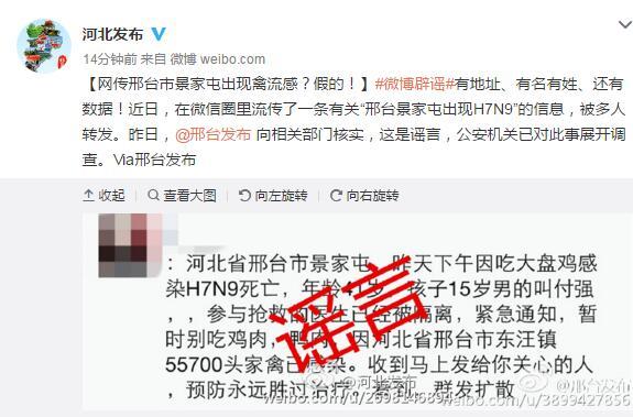 官方辟謠:網(wǎng)傳“邢臺(tái)景家屯出現(xiàn)禽流感”系謠言