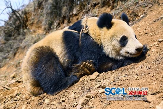四川在線消息(阿克鳩射 文圖)“大熊貓進(jìn)村了!”4月1日上午9時(shí),一條爆炸性的新聞在昭覺(jué)縣傳開(kāi):涼山州昭覺(jué)縣補(bǔ)約鄉(xiāng)散普村散普社村民沙馬偉哈在自家院子200余米外發(fā)現(xiàn)一只約重100公斤的野生雌性大熊貓。當(dāng)時(shí)沙馬偉哈家的雞和綿羊都被嚇住,不敢往前走,后來(lái)沙馬偉哈往前一看才知道,有一只大熊貓躲在那兒。這不是愚人節(jié)玩笑,有圖有真相。這是自2014年5月7日該縣宜牧地鄉(xiāng)發(fā)現(xiàn)野生大熊貓后,昭覺(jué)縣境內(nèi)第二次發(fā)現(xiàn)野生大熊貓。