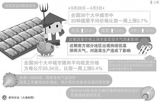 本報(bào)北京4月7日電 (記者王珂)商務(wù)部新聞發(fā)言人沈丹陽7日表示,近期蔬菜價(jià)格上漲主要受天氣因素影響,未來隨著氣溫回升和蔬菜上市量增加,預(yù)計(jì)菜價(jià)總體將呈現(xiàn)回落態(tài)勢(shì)。