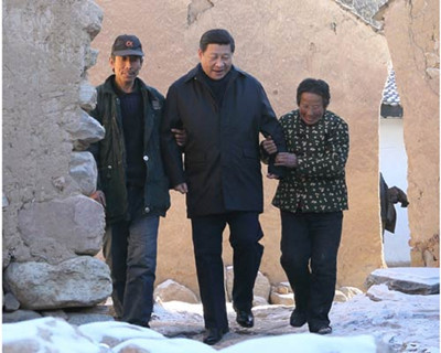 2012年12月29日,習(xí)總書(shū)記首次去基層考察,就冒著嚴(yán)寒前往河北省國(guó)家級(jí)貧困縣阜平縣。在阜平縣,習(xí)總書(shū)記最關(guān)心的就是如何讓貧困群眾真實(shí)富起來(lái),他在群眾家里脫鞋上炕盤(pán)腿而坐,在困難群眾家里吃窩頭,在風(fēng)雪地里與群眾手挽手行走,給人們留下非常深刻的印象。