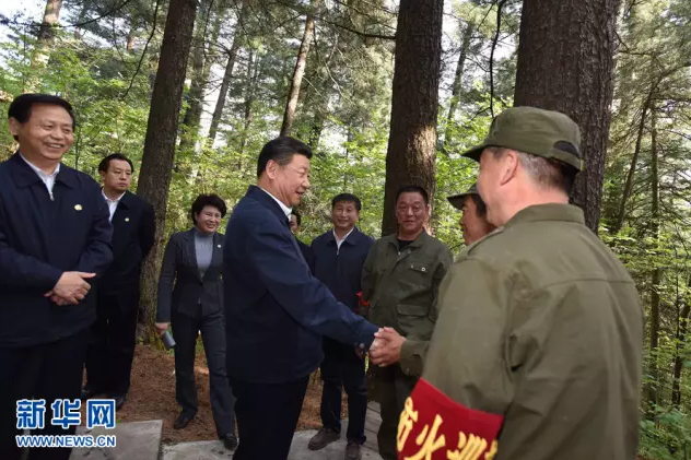 5月23日下午,習(xí)近平在上甘嶺林業(yè)局溪水國家森林公園視察時,叮囑林場工作人員一定要把森林資源保護好。 新華社記者 李濤 攝
