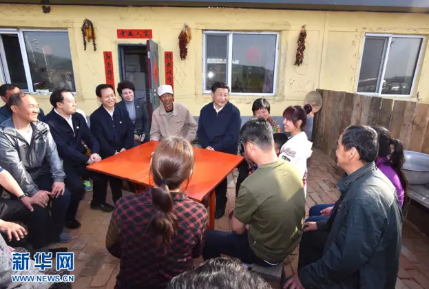 5月23日下午,習(xí)近平在伊春上甘嶺林業(yè)局溪水經(jīng)營所林場職工劉養(yǎng)順(左五)家,同一家人及其鄰居們親切交談。 新華社記者 李濤 攝