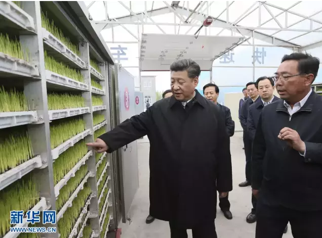 5月24日上午,習(xí)近平在撫遠市玖成水稻種植合作社了解箱式快速育秧技術(shù)流程。 新華社記者 蘭紅光 攝