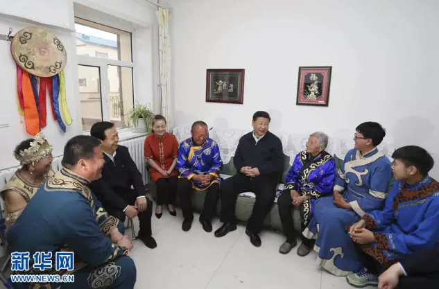 5月24日下午,習(xí)近平在佳木斯市同江市八岔赫哲族鄉(xiāng)八岔村村民尤桂蘭(右三)家中看望。 新華社記者 蘭紅光 攝