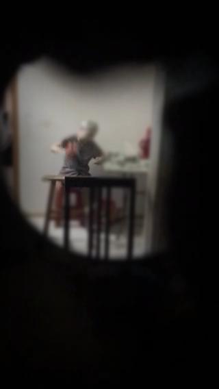 今天上午,記者來(lái)到這里,門(mén)上被掏了個(gè)小洞,記者透過(guò)小洞看到,一位老太太坐著抽煙,隔幾分鐘就拿起木塊,用勁砸凳子,一邊砸一邊喊:“妖精!”砸累了就繼續(xù)抽煙。