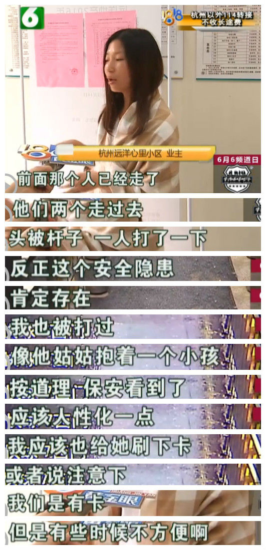 采訪時(shí),有幾位業(yè)主反映,也被桿子打到過(guò)。