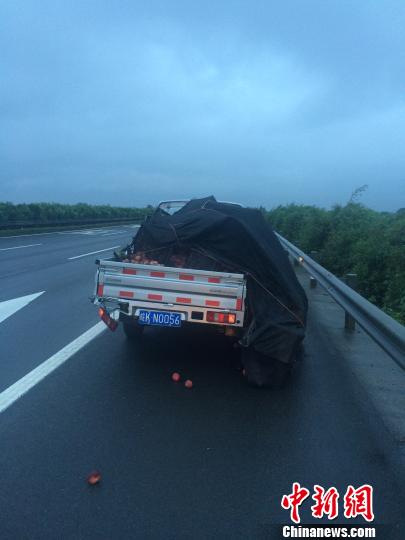 中新網(wǎng)寧波6月13日電(記者 何蔣勇 通訊員 張磊)6月13日凌晨5時許,G15沈海高速往浙江寧波方向1445km+700m處,一輛載桃子的輕型貨車在途徑此處不慎碰撞中央護(hù)欄,車子一度傾斜欲翻車,幸虧駕駛員劉某反應(yīng)及時,將車子控制住,緊急靠邊停放,未造成司乘人員傷亡,但是數(shù)十筐桃子將高速路密密麻麻鋪滿,乍一看現(xiàn)場如同豐收的農(nóng)莊。