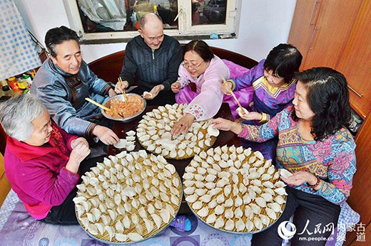 圖為呼和浩特市清泉街社區(qū)的少數(shù)民族居民圍坐在一起包餃子:“生活在這個社區(qū)的各族群眾之間和諧團(tuán)結(jié),大家將心比心以心換心,親如一家心連心!保ㄙY料圖)