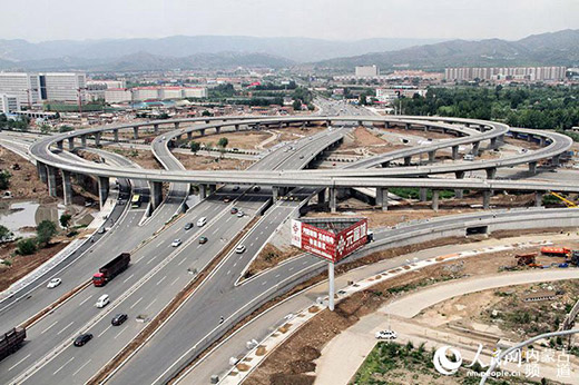 便捷的交通讓身處青城的老百姓受益,圖為呼和浩特市快速路立交橋鳥瞰圖。(張雪冬 攝)