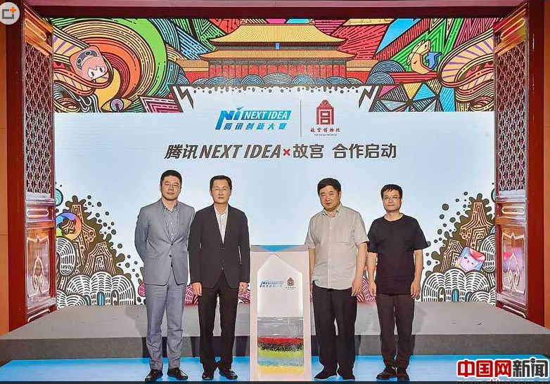 2016年7月6日,騰訊與故宮博物院在故宮端門數(shù)字館舉辦“騰訊NEXT IDEA ×故宮”發(fā)布會(huì),宣布建立合作伙伴關(guān)系,開展長期合作。故宮博物院院長單霽翔(右二)、故宮博物院副院長馮乃恩(右一),騰訊公司董事會(huì)主席兼首席執(zhí)行官、北京故宮文物保護(hù)基金會(huì)創(chuàng)始理事馬化騰(左二),騰訊公司副總裁、騰訊影業(yè)首席執(zhí)行官程武(左一)出席此次發(fā)布會(huì)。