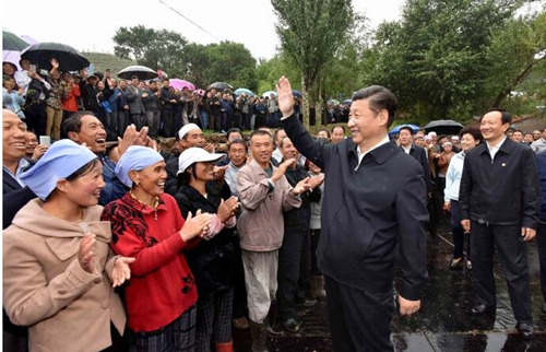 7月18日下午,習(xí)近平總書(shū)記來(lái)到了固原市涇源縣大灣鄉(xiāng)楊嶺村看望父老鄉(xiāng)親,實(shí)地考察精準(zhǔn)扶貧情況。總書(shū)記察看村容村貌,向當(dāng)?shù)馗刹苛私獯遄用撠毲闆r。