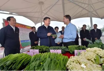 習(xí)近平參觀這里的冷涼蔬菜基地,向種植大戶了解蔬菜檢測標(biāo)準(zhǔn)、化肥使用情況、噴灌設(shè)施成本,關(guān)心村民的土地承包費(fèi)、務(wù)農(nóng)打工費(fèi)和入股分紅情況。