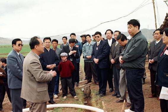 1997年4月,習近平率福建黨政代表團深入寧夏南部山區(qū)考察,并出席了閩寧對口扶貧協(xié)作第二次聯(lián)席會議。6天里,習近平走訪了5個對口幫扶縣,查看了吊莊搬遷、井窖抗旱,探訪了貧困家庭。圖為習近平在寧夏隆德縣貧困農(nóng)村調(diào)研。 新華社記者 劉泉龍攝