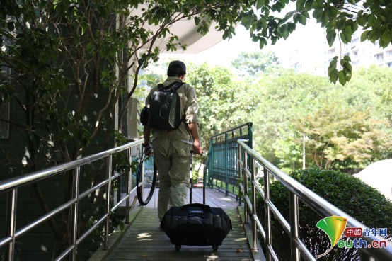 炎熱的天氣,徐珺正在趕往居民的家中為用戶(hù)安裝光纜。中國(guó)青年網(wǎng)記者 劉尚君攝