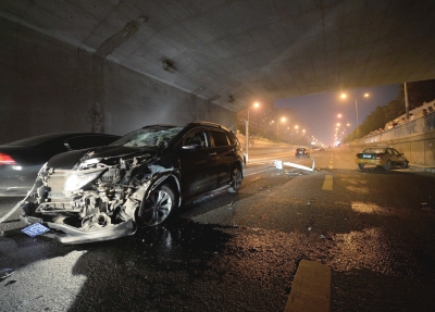 兩車相撞受損嚴重。京華時報記者陶冉攝