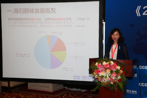 中國(guó)與全球化智庫(kù)(CCG)主任王輝耀、秘書長(zhǎng)苗綠博士與海威時(shí)代教育咨詢有限公司總裁俞仲秋共同出席發(fā)布報(bào)告會(huì)并對(duì)相關(guān)內(nèi)容進(jìn)行了介紹,為了更好地研究我國(guó)留學(xué)歸國(guó)人員就業(yè)現(xiàn)狀,2016年3月--7月,中國(guó)與全球化智庫(kù)(CCG)聯(lián)合北京海威時(shí)代教育咨詢有限公司開展了本次調(diào)研。調(diào)研主要面向回國(guó)發(fā)展的各類留學(xué)歸國(guó)人員,其學(xué)歷涵蓋從高中、本科以至博士多個(gè)層次。研究問題涉及其行業(yè)分布、薪酬水平、回國(guó)原因以及職業(yè)規(guī)劃等。此次調(diào)查共收到820份問卷,其中,被調(diào)查者中,女性居多,占到近70%,在年齡方面,主要集中在26-35歲。受訪者學(xué)歷多為碩士,主修專業(yè)以商科占主導(dǎo)。