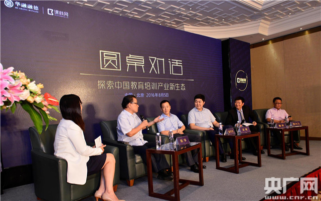 圓桌對(duì)話探討中國(guó)教育培訓(xùn)產(chǎn)業(yè)發(fā)展新路。(央廣網(wǎng)記者 于聞 攝)
