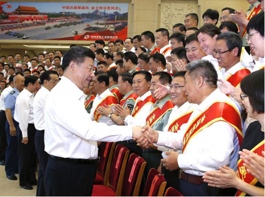 2016年7月29日,全國(guó)雙擁模范城(縣)命名暨雙擁模范單位和個(gè)人表彰大會(huì)在北京舉行。習(xí)近平親切會(huì)見(jiàn)與會(huì)代表,向全體支持和參與雙擁工作的同志表示誠(chéng)摯的慰問(wèn),向獲得表彰的單位和個(gè)人表示熱烈祝賀,并抒發(fā)“軍民團(tuán)結(jié)如一人,試看天下誰(shuí)能敵”的豪情壯志。