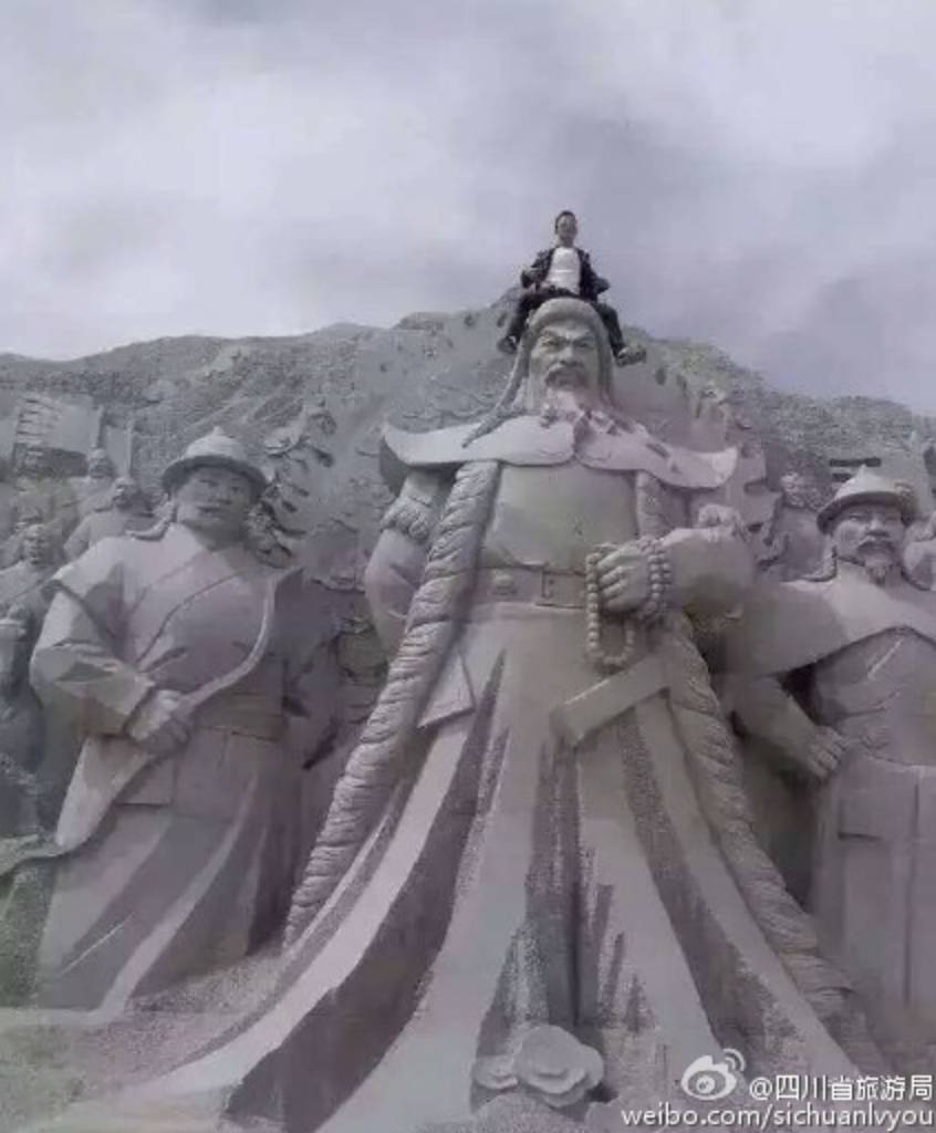 在青海某景區(qū)游覽時(shí),攀爬主題雕像照相,并將照片在網(wǎng)絡(luò)上傳播,造成惡劣社會(huì)影響。