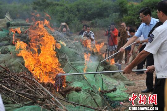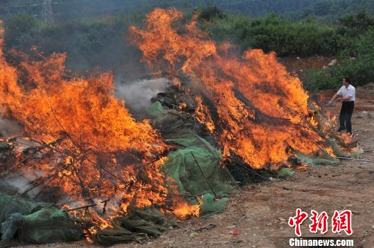 圖為集中銷毀違規(guī)漁具。 任東 攝