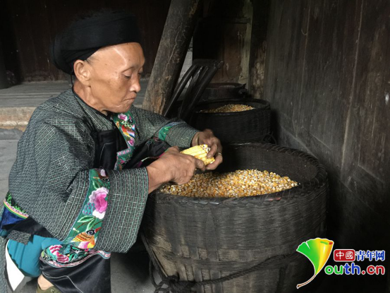 被習(xí)總書記喚做“大姐”的石爬專在家掰玉米。中國(guó)青年網(wǎng)記者 吳楚 攝