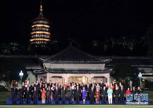 圖為:2016年 9月4日,國(guó)家主席習(xí)近平和夫人彭麗媛在杭州西子賓館舉行宴會(huì),歡迎出席二十國(guó)集團(tuán)領(lǐng)導(dǎo)人杭州峰會(huì)的外方代表團(tuán)團(tuán)長(zhǎng)及所有嘉賓。這是習(xí)近平和彭麗媛同外方代表團(tuán)團(tuán)長(zhǎng)及配偶在室外草坪合影留念。