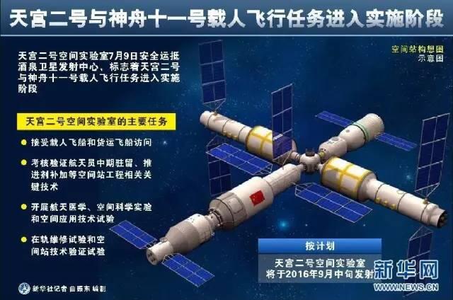 自9月15日開始,我國(guó)“天宮二號(hào)”空間實(shí)驗(yàn)室發(fā)射正式進(jìn)入倒計(jì)時(shí)。“天宮二號(hào)”發(fā)射入軌后將在太空完成航天員中期駐留、推進(jìn)劑在軌補(bǔ)加、在軌維修技術(shù)試驗(yàn)三大任務(wù)。
