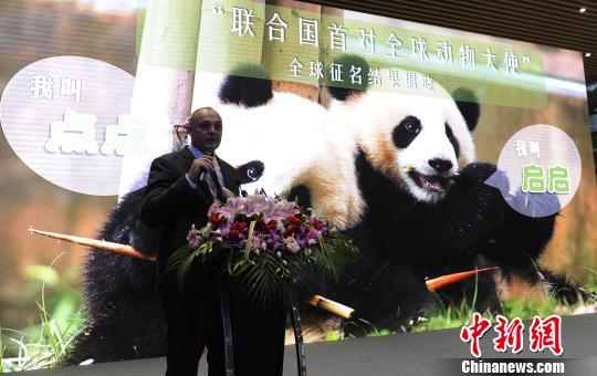 當(dāng)天,聯(lián)合國開發(fā)計(jì)劃署駐華代表處助理國別主任NielsKnudsen宣布了“聯(lián)合國開發(fā)計(jì)劃署全球首對(duì)動(dòng)物大使”的名字為啟啟(Qiqi)、點(diǎn)點(diǎn)(Diandian)。這對(duì)名字不僅寓意著它們所代言的“17個(gè)聯(lián)合國可持續(xù)發(fā)展目標(biāo)”(SDG)在全球推廣的新起點(diǎn),也意味著聯(lián)合國開發(fā)計(jì)劃署與成都市、成都熊貓基地合作的新起點(diǎn)。