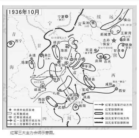 為策應(yīng)紅二、四方面軍向靜(寧)會(huì)(寧)地區(qū)集結(jié),9月30日彭德懷下達(dá)了紅一方面軍南下的部署,以紅一軍團(tuán)一部控制西蘭大道,紅十五軍團(tuán)騎兵團(tuán)組成特別支隊(duì),于10月2日一舉攻占會(huì)寧縣城,為會(huì)師打下基礎(chǔ)。