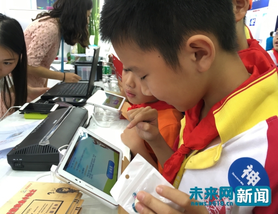在中國(guó)互聯(lián)網(wǎng)絡(luò)信息中心(簡(jiǎn)稱(chēng)CNNIC)展區(qū),不少中小學(xué)生駐足答題贏獎(jiǎng)品。