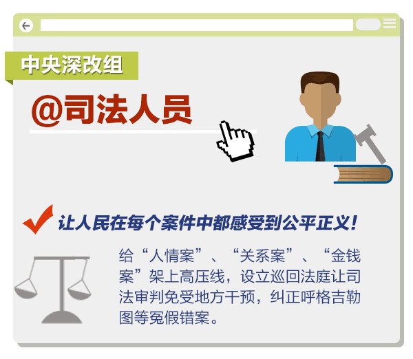 27次中央深改組會議,有18次涉及司法議題。其中的每一項(xiàng)舉措,都著眼于讓百姓感受到公平正義:建立領(lǐng)導(dǎo)干部干預(yù)司法案件記錄通報(bào)和責(zé)任追究制度,給“人情案”、“關(guān)系案”、“金錢案”架上了高壓線;在深圳、沈陽設(shè)立巡回法庭,使司法審判免受地方干預(yù);出臺深化律師制度改革意見,律師執(zhí)業(yè)權(quán)利進(jìn)一步保障。禁止干預(yù)司法案件正成為全社會共識,呼格吉勒圖、念斌、陳滿等冤假錯(cuò)案得到糾正。