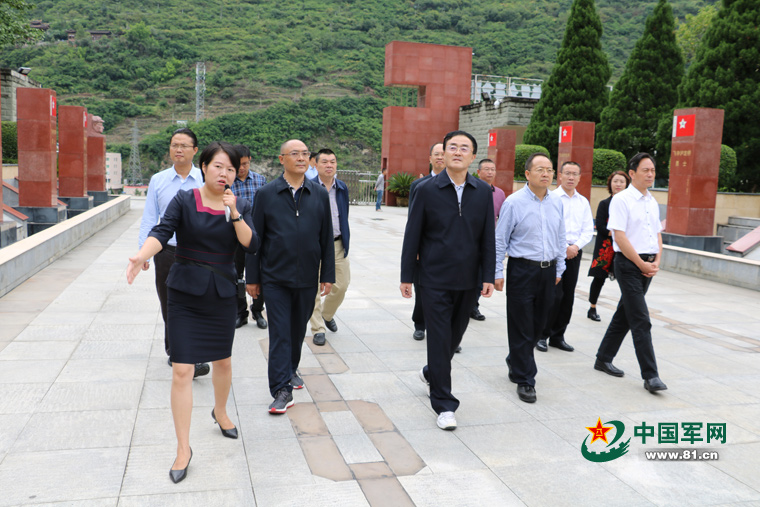 2016年9月8日 ,中共中央黨史研究室主任曲青山(前排左三)在四川瀘定紅軍飛奪瀘定橋紀念館參觀考察。