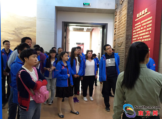 來自全國各地的網(wǎng)絡(luò)媒體記者、編輯認(rèn)真傾聽導(dǎo)游講解。南方網(wǎng) 周丹陽 攝