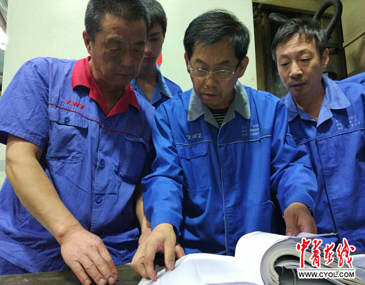李書乾等人正在仔細(xì)翻看設(shè)備圖紙
