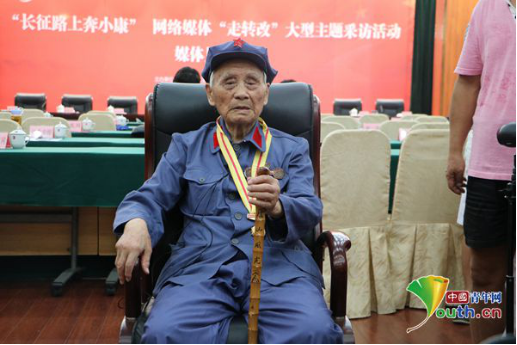百歲老紅軍王承登為記者講述長(zhǎng)征故事。中國(guó)青年網(wǎng)記者李川 攝