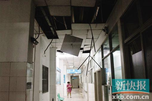倉庫附近的東莞康怡醫(yī)院多處窗戶天花受損。 新快報(bào)記者 畢志毅/攝