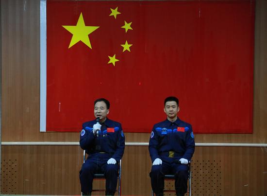 今天上午十點(diǎn)半,神舟十一號載人飛行任務(wù)航天乘組與記者見面會(huì)在酒泉衛(wèi)星發(fā)射中心問天閣召開,F(xiàn)年50歲、已經(jīng)兩度飛天的景海鵬和將要開始首次太空之旅的陳冬,組成了“神十一”新老搭配的航天乘組。