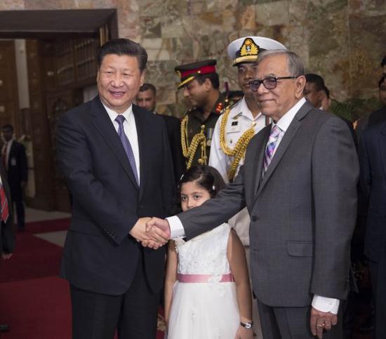 圖為10月14日,國家主席習(xí)近平在達(dá)卡會見孟加拉國總統(tǒng)哈米德。(新華社記者謝環(huán)馳攝)
