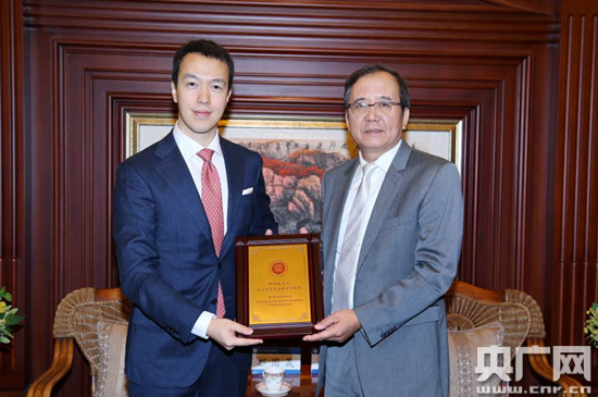北京大學(xué)校長(zhǎng)林建華向國雙CEO祁國晟頒發(fā)“北京大學(xué)杰出教育貢獻(xiàn)獎(jiǎng)”