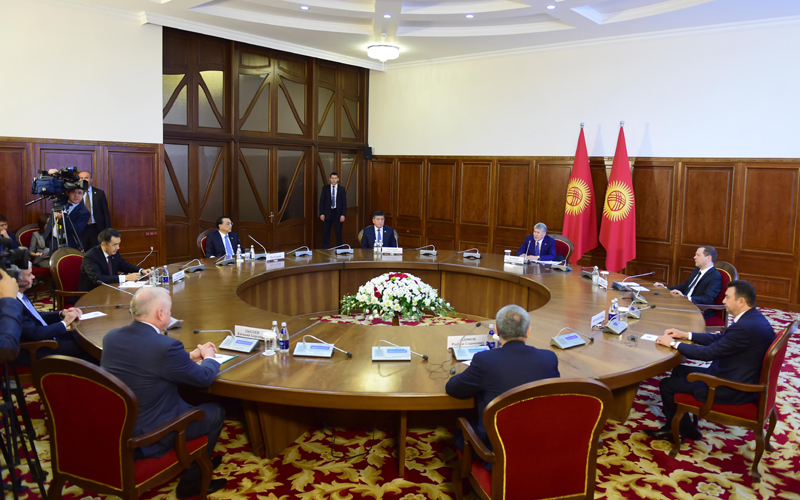 當(dāng)?shù)貢r間3日上午,李克強(qiáng)總理前往吉爾吉斯斯坦總統(tǒng)官邸出席吉總統(tǒng)集體會見上合組織成員國代表團(tuán)團(tuán)長活動,并與阿塔姆巴耶夫總統(tǒng)親切交談。